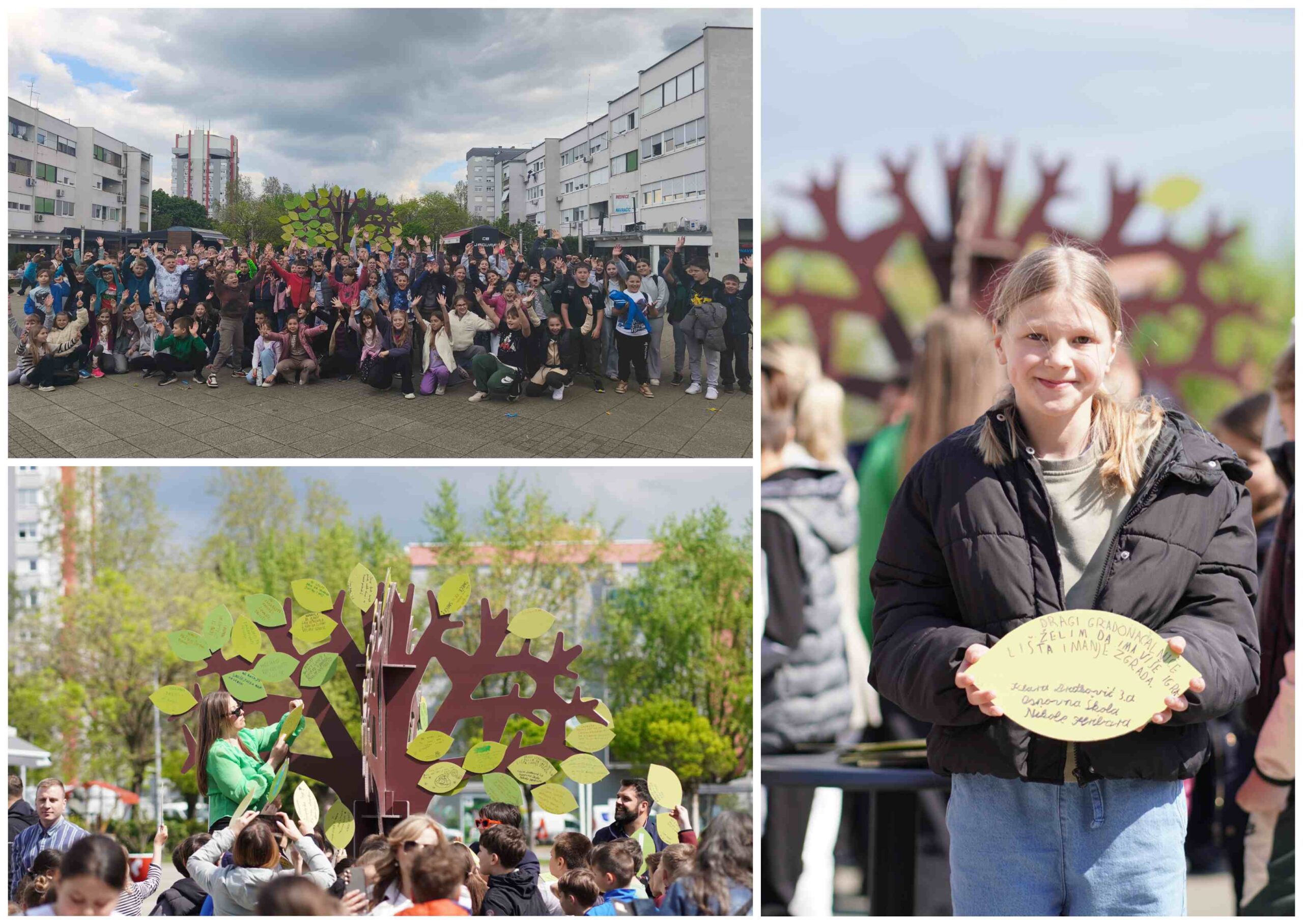 Gradonačelnik Krešimir Ačkar pridružio se okupljenim školarcima i istaknuo važnost ranog ekološkog odgoja te borbe protiv neodgovornog ponašanja pojedinca. Tom je prilikom naglasio kako je dječja zrelost u promišljanju budućnosti grada iznimna te da će gradska uprava njihove poruke shvatiti ozbiljno. Uz glavnu skulpturu na trgu, akcija obuhvaća i 15 manjih verzija drva postavljenih u goričkim vrtićima i školama, a najavljena je i sadnja 40 pravih stabala.