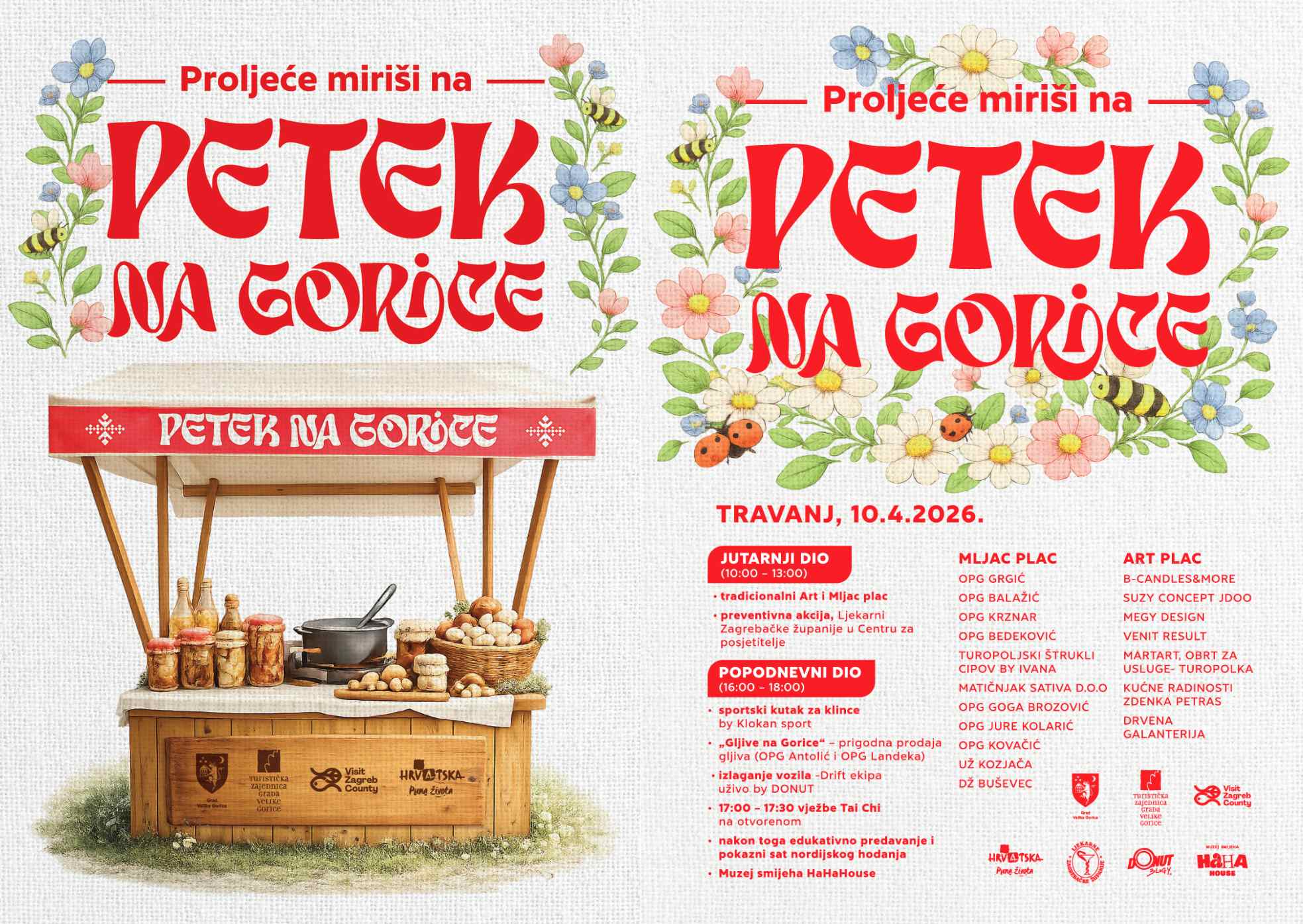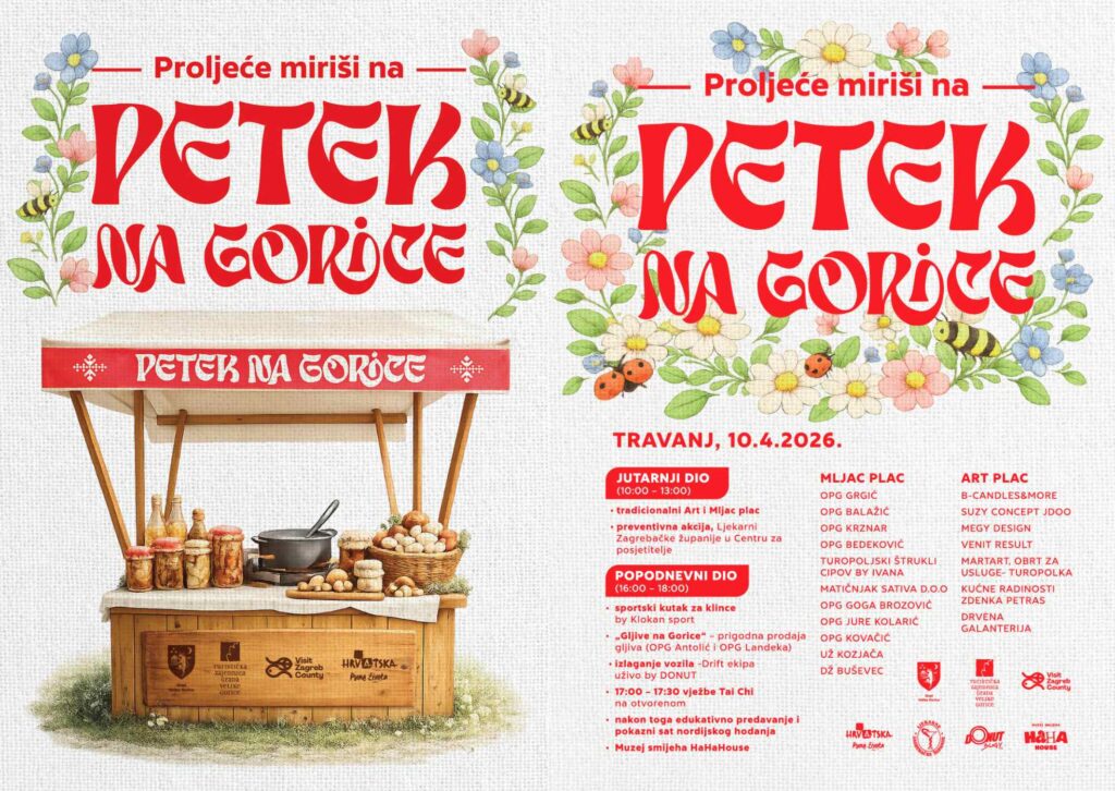 - „Gljive na Gorice“: Mali sajam na kojem će OPG Antolić i OPG Landeka ponuditi svježe gljive i prerađevine.