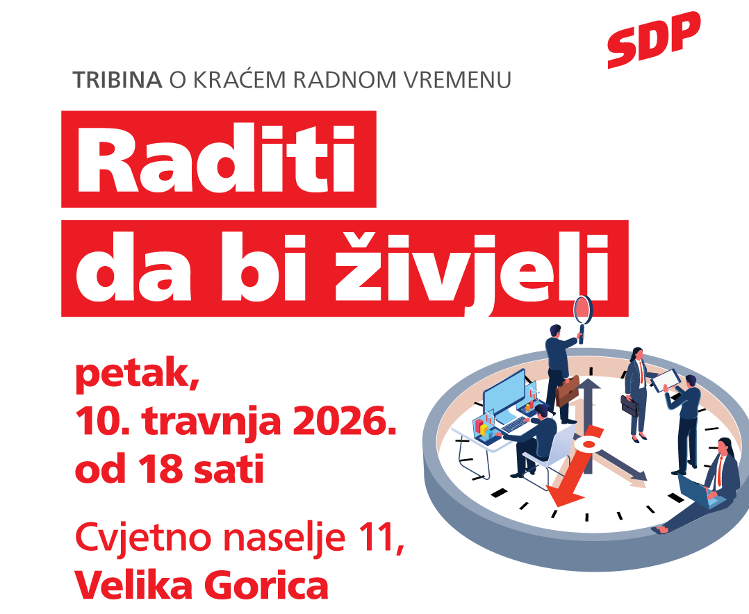 Građani Velike Gorice pozvani su sutra, u petak 10. travnja, na tribinu pod nazivom „Raditi da bi živjeli“, na kojoj će se raspravljati o modernizaciji tržišta rada i pravima radnika. Događaj započinje u 18 sati u prostorijama Gradske organizacije SDP-a Velika Gorica na adresi Cvjetno naselje 11.