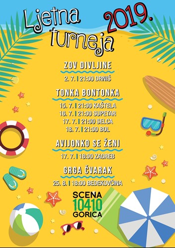Predstave “Zov divljine”, “Tonka Bontonka” “Avijonko se ženi” i “Grga Čvarak” igrat će diljem Hrvatske, a najviše na Jadranu. Ako se možda tijekom srpnja ili kolovoza nađete u mjestu u kojem se izvodi naša predstava, svakako je dođite pogledati- pozivaju sa Scene Gorica.