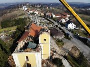 FOTO Uspješno skinuto zvono i kapa tornja razrušene crkve u Kravarskom