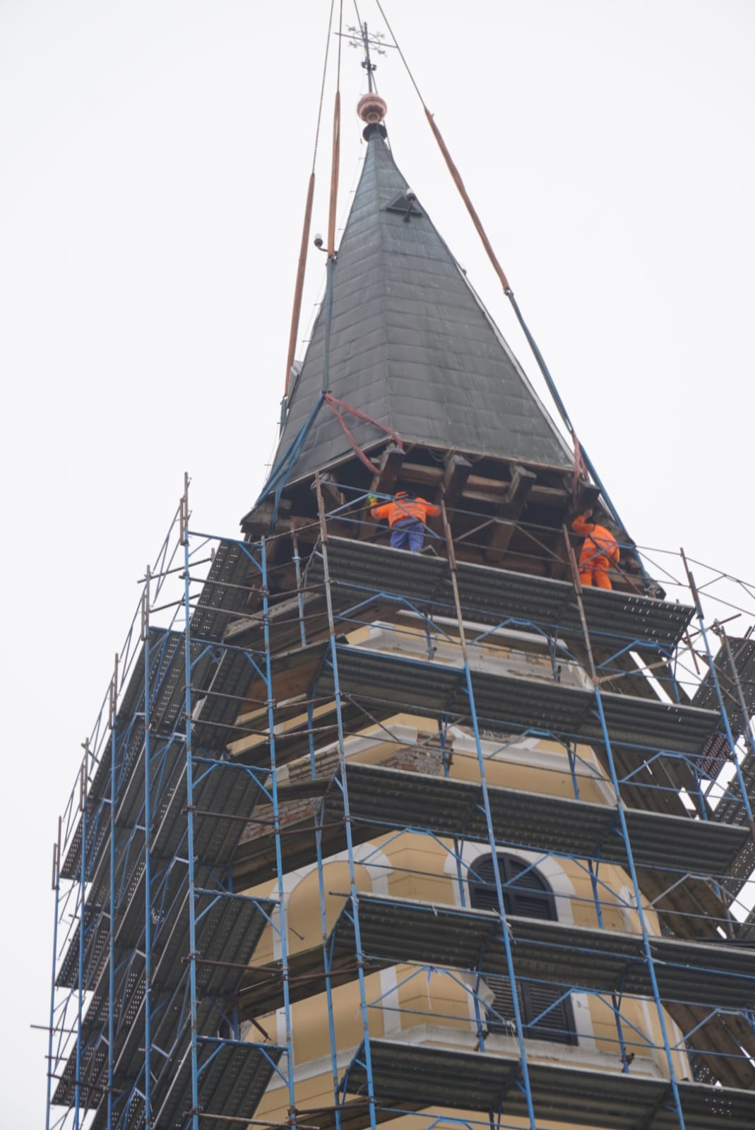 “Radujem se što se crkva obnavlja i što će danas biti dignuta kapa zvonika, a već prije toga su dignuta zvona. Raduju se župljani, radujemo se svi”, rekao je župnik.