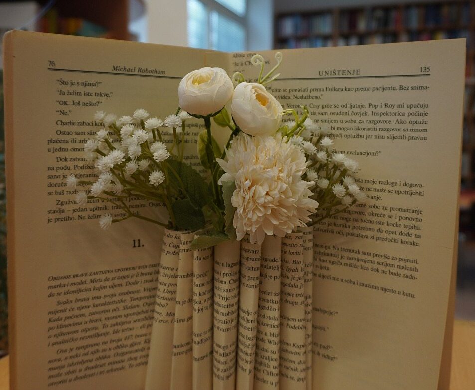 Cilj radionice je naučiti polaznike kako se mogu izrađivati zanimljivi ukrasi od otpisanih knjiga. Voditeljice ove kreativne radionice su dvije talentirane knjižničarke, Danijela Pralas i Maja Petrošević.