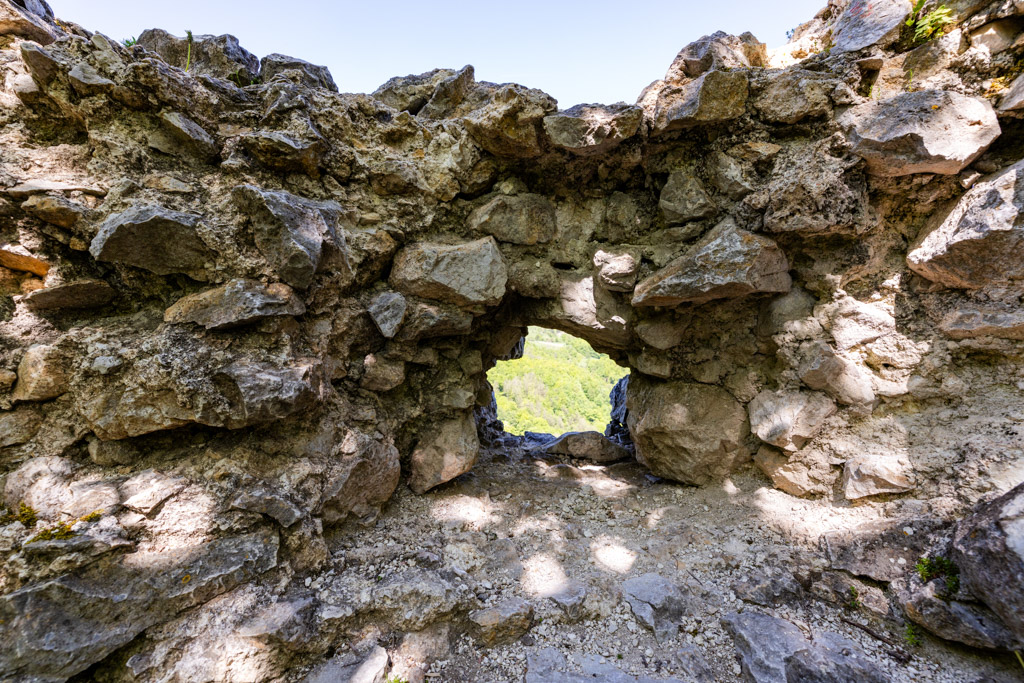 Kroz kamene otvore pružaju se pogledi na okolne brežuljke, doline i naselja – prizor koji savršeno spaja povijest i prirodu.